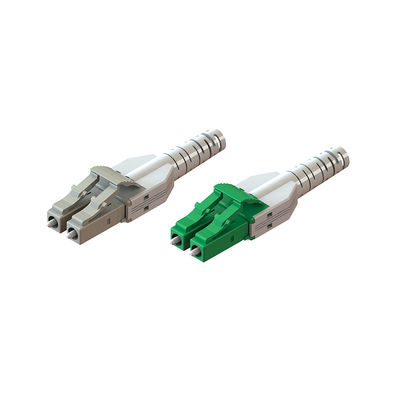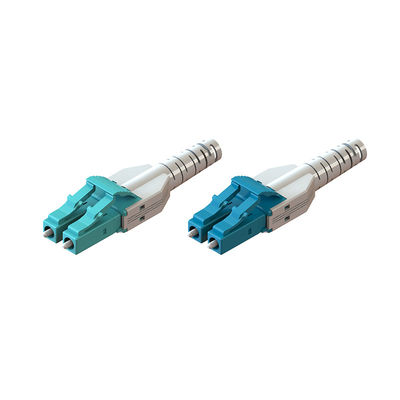 El conector LC Duplex conmutable (uniboot) cuenta con una carcasa que puede desmontarse en el campo sin necesidad de herramientas especiales.Este conector LC dúplex en particular permite cambiar la polaridad de la fibra durante el proceso de instalación del , eliminando la necesidad de volver a terminar los conectores.